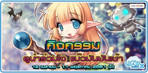 Luna X Online ตำนานเกมสุดแบ๊ว จาก PLAYPARK.COM พบกับกิจกรรม ลูน่าร่วมใจ แบ๊วมันยันเช้า สะสมเวลา เพียงผู้เล่นทั้งหมดร่วมกันออนไลน์สะสมเวลารวมทั้งเซิฟเวอร์เพื่อรับของรางวัลหากออนไลน์ครบตามจำนวนที่กำหนด รับของรางวัลไปเลย ยกเซิร์ฟ ตั้งแต่วันนี้ – 11 พฤษภาคม 2561 รายละเอียดเพิ่มเติม(คลิกที่นี่)