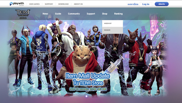 ขั้นตอนที่ 1 : เข้าสู่เวปไซด์ http://tera.playwith.in.th เลือกปุ่มล๊อกอิน Login เพื่อเข้าสู่ระบบ