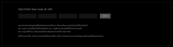 ขั้นตอนที่ 3 : กรอกรหัส Serial Code ทั้งหมด 16 หลักให้ถูกต้อง แล้วกดปุ่ม “รับไอเทม”