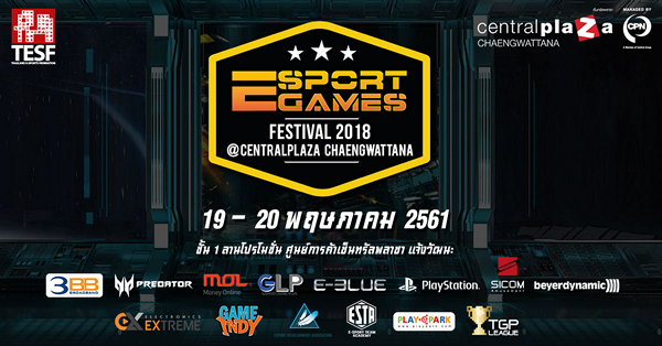 ศูนย์การค้าเซ็นทรัลพลาซา แจ้งวัฒนะ ร่วมกับ สมาคมกีฬาอีสปอร์ตแห่งประเทศไทย จัดมหกรรมการแข่งขันอีสปอร์ตโดยใช้ชื่องาน ESPORT GAME FESTIVAL 2018 @ CentralPlaza Chaengwattana เพื่อสนับสนุนและส่งเสริมเกมเมอร์เล่นเกมอย่างมีทิศทางและก้าวสู่ความเป็นนักกีฬาอีสปอร์ตมืออาชีพ มีวินัย รู้จักการจัดการบริหารเวลา พร้อมเปิดเวทีเพื่อเฟ้นหาสุดยอดนักกีฬาอีสปอร์ตหน้าใหม่ไฟแรง ชิงเงินรางวัลรวมกว่า 200,000 บาท กับเกมยอดนิยมและมีการแข่งขันในระดับสากลอย่าง DOTA2, TAKKEN7 และ FIFA18