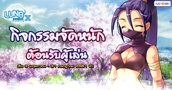 Luna X Online ตำนานเกมสุดแบ๊ว จัดกิจกรรมต้อนรับผู้เล่นไม่ว่าจะเป็นผู้เล่นใหม่ หรือผู้เล่นที่กลับมาเล่น พร้อมด้วยกิจกรรมขอบคุณผู้เล่น รับไอเทมเด็ดๆ กันไปเลย เริ่มตั้งแต่วันนี้ – 31 กรกฎาคม 2561 รายละเอียดเพิ่มเติม (คลิกที่นี่) และกิจกรรม สะสมเวลารับไอเทมฟรี แค่เพื่อนๆ ออนไลน์ก็รับไอเทมไปเลย ตั้งแต่วันนี้ – 16 พฤษภาคม รายละเอียดเพิ่มเติม (คลิกที่นี่)