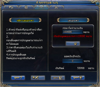 อันดับแรกจะต้องให้หัวหน้ากิลด์ ลงเงินประมูล ในระบบ กด หน้าต่างลัด กิจกรรม