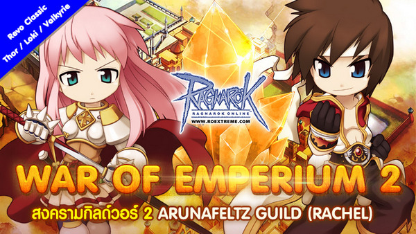 หลังจาก War of Emperium 2 (WOEII) : Schwaltzvalt Guild (เมือง Juno) ได้เปิดฉากไปเป็นที่เรียบร้อย คราวนี้ถึงตาของ Arunafeltz Guild (Rachel) กันบ้าง เตรียมกิลด์ของคุณไว้ให้พร้อม เปิดศึกครั้งใหม่! 26 กรกฎาคมนี้
