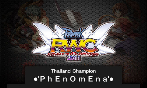 เป็นไปตามคาดหมาย •’P h E n O m E n a’• ตัวแทนประเทศไทยที่ไปร่วมชิงชัยในการแข่งขัน Ragnarok World Championship 2011 ที่ กรุงโซลประเทศเกาหลีใต้ ในวันที่ 15 ตุลาคมที่ผ่านมา ได้โชว์ฝีมือเหนือชั้นปราบผู้เข้าแข่งขันจากแต่ละประเทศจนทะลุเข้าชิงกับ ม้านอกสายตาอย่างบราซิล