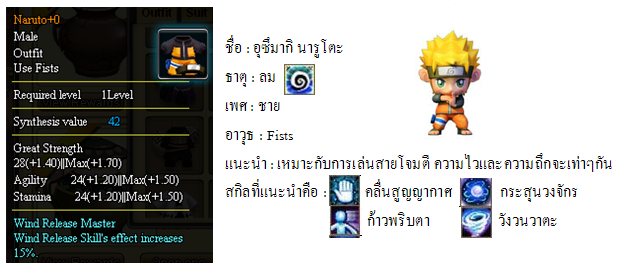 ประวัติ : เด็กหนุ่มผู้ใฝ่ฝันอยากจะเป็นนินจาผู้ยิ่งใหญ่ผู้สืบทอดชื่อโฮคาเงะให้คงอยู่ต่อไป เขาเป็นเด็กที่ซุกซนชอบทำอะไรแผลงๆ เพื่อเรียกร้องความสนใจ โฮคาเงะรุ่นที่ 4 ได้ผนึกปีศาจจิ้งจอกเก้าหางที่ร้ายกาจไว้ในร่างกายของเขาตั้งแต่ตอนที่เขาเพิ่งเกิด จึงทำให้พวกผู้ใหญ่ที่ล่วงรู้เรื่องนี้มักมองเขาด้วยสายตารังเกียจ สายตาเหล่านันได้ถ่ายทอดไปยังเด็กๆ จึงทำให้เขาไม่มีเพื่อน