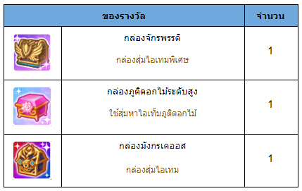 - จะได้รับไอเทม กล่องอัญมณีรวมพิเศษ 1 ชิ้น , กล่องจักรพรรดิ 1 ชิ้น