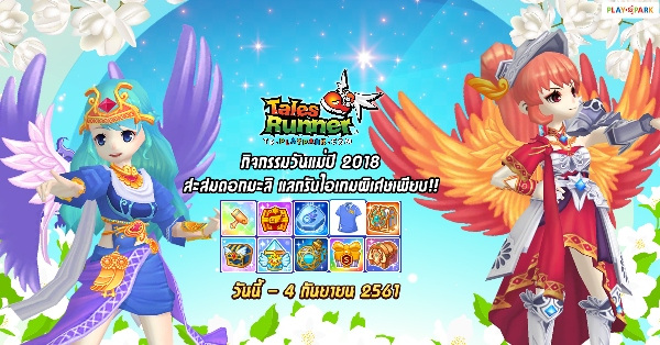 Tales Runner เกมวิ่งแข่งอันดับหนึ่งของไทย จัดกิจกรรมต้อนรับวันแม่เพื่อนักวิ่งทุกคน เพียงผู้เล่นเล่นสนามใดก็ได้ในเกม Tales runner โดยภายในเกมจะทำการสุ่มตกไอเทมดอกมะลิ และให้ผุ้เล่นนำไอเทมดอกมะลิมาแลกของรางวัลจากร้านค้าแลกเปลี่ยน ตั้งแต่วันนี้ – 4 กันยายน 61 รายละเอียดเพิ่มเติม (คลิกที่นี่) และนอกจากนี้ยังมีกิจกรรมอื่นๆอีกในแฟนเพจ สามารถติดตามรายละเอียดข่าวสารได้ที่ Playpark Tales Runner