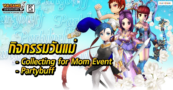 Yulgang ยุทธภพครบสลึง สุดยอดเกม MMO แนวจีนอันดับ 1 ในประเทศไทย พบกับกิจกรรมวันแม่ Collecting for Mom Event แค่เพื่อนๆ สะสม เควสไอเทม ให้ครบ 3 ชิ้น นำไปแลกรางวัลที่ NPC และ กิจกรรม ปาร์ตี้บัฟวันแม่หรรษา พิเศษเฉพาะวันแม่เท่านั้น เพิ่มค่าประสบการณ์ 50% ทุกเซิร์ฟเวอร์!! วันที่ 12 สิงหาคม เท่านั้น รายละเอียดทั้ง 2 กิจกรรมเพิ่มเติม (คลิกที่นี่)
