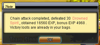 เมื่อรอจนหมดเวลา หรือใช้ระบบเร่งเวลาจบก็จะได้ exp และ ไอเทมที่ดรอบต่างๆ เข้ากระเป๋าทันที