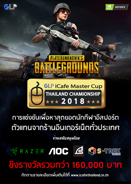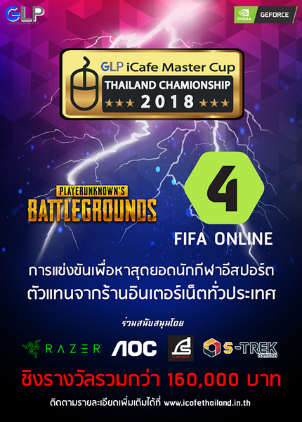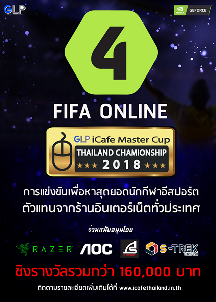 GLP iCafe Master Cup Thailand Championship 2018 “แข่งมันส์!! ยันสิ้นปี สมัครได้ที่ icafe ใกล้คุณ” เป็นการประสานความร่วมมือกันระหว่าง ร้าน Gspeed Living Plus กับ Nvidia จัดขึ้นเพื่อมุ่งหวังให้กลุ่มร้าน Internet Cafe ได้มีส่วนร่วมในการเฟ้นหานักกีฬาอีสปอร์ตที่มีฝีมือ เพื่อขัดเกลาแหละหล่อหลอมให้เป็นนักกีฬาอีสปอร์ตที่มีคุณภาพ ได้โลดแล่นในวงการอีสปอร์ตต่อไป โดยเกมที่ใช้แข่งขันในปีนี้จะมี 2 เกมคือ FIFA Online 4 และ PUBG