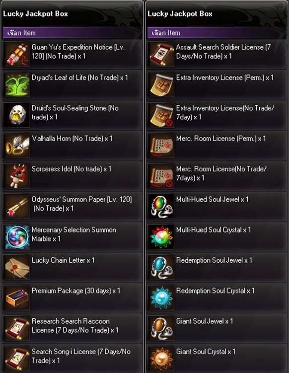 (ไอเทมในกล่อง Lucky Jackpot Box)