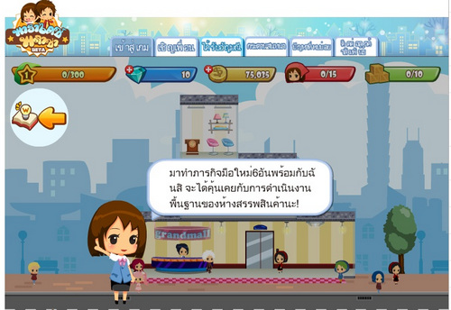 เมื่อเพื่อนๆ เข้าเกมมาเพื่อนๆ จะได้พบกับพนักงานสาวที่จะมาแนะนำเราว่าเราต้องทำอะไรบ้าง ทำแล้วจะได้อะไรตอบแทน ซึ่งเธอก็จะเป็นคนแนะเราให้รู้ทุกซอกทุกมุมกันเลยทีเดียว เราสามารถออกแบบห้างของเราได้หลากหลาย เลือกขายเลือกวางสินค้าต่างๆ ได้ตามใจเราต้องการ รวมไปถึงการตกแต่งห้างของเราด้วยว่าจะให้ออกมาแบบไหน