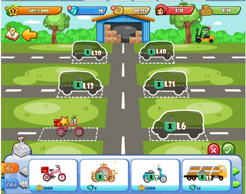 เราต้องเตรียมของเข้าโกดังสินค้าของเราด้วยนะครับ ซึ่งการเตรียมของนั้นเราต้องทำการชื้อรถจัดส่งสินค้าด้วย ซึ่งรถส่งสินค้าเหล่านี้ก็มีหลากหลายแบบให้เลือกมาครับ ตั้งแต่เริ่มแรกเปิดกิจการเป็นแค่รถจักรยานส่งของเล็กๆ ไปจนรถบรรทุกขนาดใหญ่ วึ่งเราสามารถเลือกชื้อได้ตามระดับเลเวลของเรา และกำลังเงินในกระเป๋าของเรา