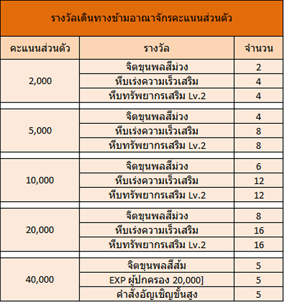 - รางวัลคะแนนส่วนตัว: จะได้รับรางวัลเมื่อมีคะแนนครบตามที่กำหนด