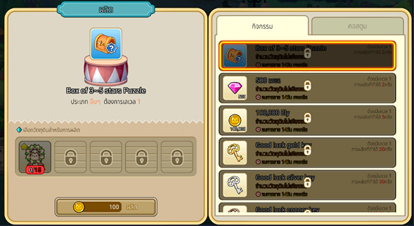 1. Box 3-5 stars puzzle – จำนวนพวงมาลัยที่ใช้ 15 ชิ้น / จำนวนที่สามารถแลกได้ 2 ครั้ง