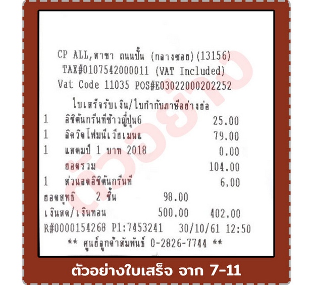 - ถ่ายรูปใบเสร็จ 7-eleven ที่โชว์การซื้อสินค้าโฟมล้างหน้า นีเวีย เมน แอคเน่ เคลียร์