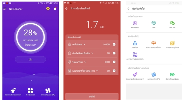 นอกจากนี้ เราได้ทดสอบระบบเคลียร์แคชและไฟล์ขยะ (ที่จะไปเพิ่มพื้นที่หน่วยความจำของเครื่องโดยไม่จำเป็น) ก็ปรากฎว่าหลังจากทำการสะอาดไปแล้วก็เพิ่มพื้นที่ว่างมาให้จริงๆ โดยเฉพาะตัวแอปตัวนี้จะไปลบแคชจากแอปอย่าง Facebook หรือ Youtube รวมไปถึง Chrome ให้ด้วย (มือถือตัวนี้ ติดตั้งและดาวน์โหลดหนังของ Netfilx และแอปต่างๆ ยัดเอาไว้ให้เกือบเต็ม เพื่อทดสอบโดยเฉพาะ) และก็ไม่มีแอปตัวไหนในเครื่องเสียหายจากการใช้ Nox Cleaner เลยครับ