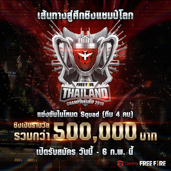 การีนาเปิดรับสมัครตัวแทนประเทศไทยร่วมชิงชัยศึกแชมป์โลกรายการ ‘Free Fire World Cup’ ตั้งแต่วันนี้ ถึง 6 ก.พ. 2562