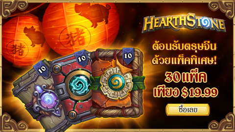 การเฉลิมฉลองเริ่มต้นแล้ววันนี้ด้วยชุดวันตรุษจีน ประกอบไปด้วยซองการ์ดจาก The Witchwood, The Boomsday Project และ Rastakhan’s Rumble ส่วนเสริมละ 10 ซอง รวมทั้งหมด 30 ซองในราคาเพียง $19.99 ดอลลาร์สหรัฐ! สามารถซื้อชุดนี้ได้จนกว่ากิจกรรมจะสิ้นสุดลงในวันพฤหัสบดีที่ 14 กุมภาพันธ์ เวลา 01:00 น. ตามเวลาประเทศไทย