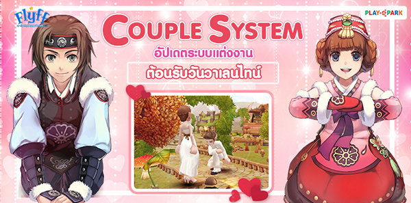 Flyff เกม MMORPG สุดแบ๊วที่ใครก็บินได้ จาก PlayPark.com ต้อนรับเทศกาลแห่งความรัก อัพเดตระบบใหม่ “Couple System” ระบบคู่รักที่จะทำให้การผจญภัยของเหล่านักบินหวานฉ่ำกันยกเซิร์ฟ และด้วยระบบใหม่นี้เพื่อนๆ สามารถขอแต่งงานกับผู้เล่นอื่นได้ โดยที่ไม่มีการจำกัดเลเวลของตัวละคร (ทีมปังแอบกระซิบว่ามีชุดแต่งงานให้เพื่อนๆ ด้วยนะ) นอกจากนั้นเมื่อแต่งงานกันแล้วคู่รักจะได้รับสกิล และไอเทมพิเศษมากมายที่จะช่วยเพิ่มความสะดวกสบายระหว่างการผจญภัย ผ่านการเก็บเลเวลคู่รัก ยิ่งเลเวลคู่รักสูง เลเวลของสกิลก็จะสูงตามไปด้วยนะ แบบนี้ไม่มีคู่ไม่ได้แล้ววววววว~ ติดตามรายละเอียดเพิ่มเติมที่ http://bit.ly/Couple_System