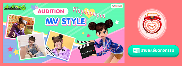 - กิจกรรม แต่งตัว MV Style Ploychompoo [วันนี้ – 28 กุมภาพันธ์ 2562] โพสต์รูปตัวละครในเกม AUDITION ที่คิดว่าแต่งตัวเหมือน พลอยชมพู ใน MV “ความรักฉันคือเธอ” มากที่สุด รับไอเทม Love Heart Alarm Clock ไปใส่กันเลยคูลๆ รายละเอียดเพิ่มเติม http://bit.ly/2SHmCZp