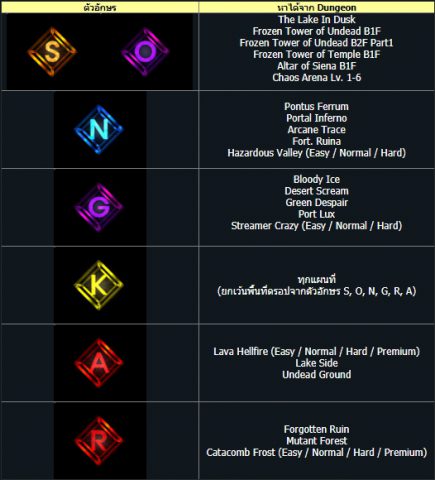 - ผู้เล่นจะต้องเก็บสะสมตัวอักษร “S O N G K R A N” จาก Dungeon ที่กำหนด