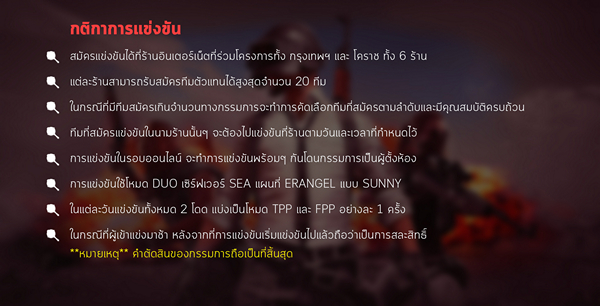– การแข่งขันใช้โหมด DUO เซิร์ฟเวอร์ SEA แผนที่ ERANGEL แบบ SUNNY