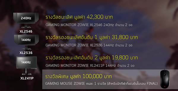 รองชนะเลิศอันดับ 1 รับ Gaming Monitor Zowie XL2536 144Hz จำนวน 2 จอ