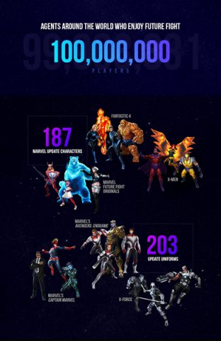 MARVEL Future Fight เปิดตัวในเดือนเมษายน 2558 และประสบความสำเร็จมาเป็นระยะเวลายาวนาน เนื่องจากการอัปเดตอย่างสม่ำเสมอในทุกๆเดือน รวมไปถึงฮีโร่ตัวใหม่ และเนื้อหาที่น่าสนใจ ซึ่งมียอดการดาวน์โหลดทะลุ 100 ล้านเคานต์ดาวน์แล้วเมื่อเดือนเมษายนที่ผ่านมานี้