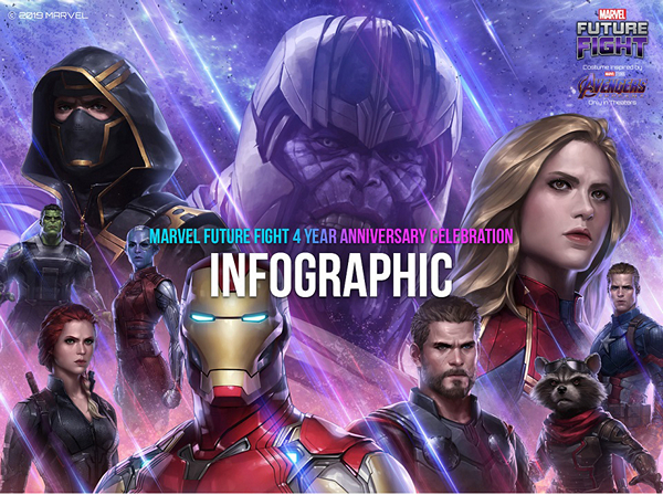 เน็ตมาร์เบิ้ลคอร์ปอเรชั่น เฉลิมฉลอง ครบรอบปีที่ 4 ของเกมยอดนิยมอย่าง MARVEL Future Fight ที่มีผู้เล่นกว่า 100 ล้านคนทั่วโลก เพื่อเฉลิมฉลองก้าวสำคัญ เน็ตมาร์เบิ้ลจึงได้จัดกิจกรรมหลากหลายภายในเกมสำหรับผู้เล่น และยังได้เผยแพร่ความจริงที่น่าสนใจเกี่ยวกับเกมผ่านทางอินโฟกราฟิกอีกด้วย