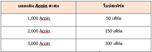 1. แจกโบนัสเพิร์ล ! แจกโบนัสเพิร์ลให้ทุกท่านที่เติม Acoin ผ่านช่องทาง Razer Gold