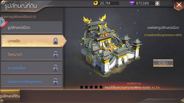ระบบสกินเมือง ระบบสกินเมืองที่สามารถแต่งเมืองให้เด่นกว่าใครๆ ด้วยสกินเมืองที่มีความสวยงามอลังการโดยจะได้รับสกินเมือง
