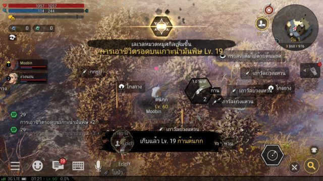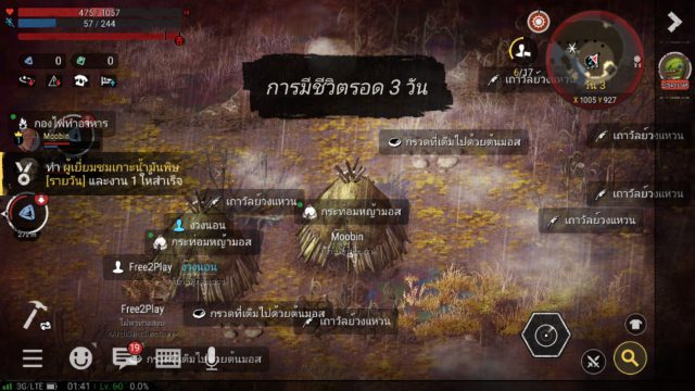 มาถึงปุ๊บให้รีบเก็บของพวก เถาวัลย์ กิ่งไม้ ใบบัว มอส เพื่อมาสร้างเป็นชุด และกระท่อม เตรียมไว้สำหรับคืนที่ 1 ส่วนวันที่ 2 ให้เก็บของเตรียมสร้าง ที่พักกันหมอก ซึ่งต้องใช้เสื่อปูในที่พักกันหมอกด้วย หาแมลงต่างๆมาทำเป็นข้าวต้มลดความเหนื่อย หากเจอซากสัตว์ให้รีบไปเก็บขวดพลาสติกเพื่อทำชุดได้ดีขึ้น แล้วออกไปขุดแร่ตามสัญญาณ