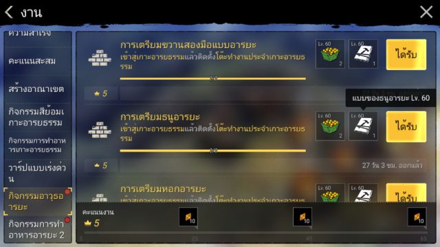 กิจกรรมอาวุธอาระยะ : วางโต๊ะสร้างอาวุธอารยะ(จากในกิจกรรม) ที่เกาะอารยะแล้วก็สร้างอาวุธ ขวานสองมือ ธนู และหอก ตามที่กำหนดแล้วนำไปล่าสัตว์ที่กำหนดในเควสก็จะได้รับเพชรว๊าปไปอย่างฟรีๆ