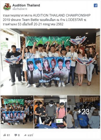 การแข่งขัน AUDITION THAILAND CHAMPIONSHIP 2019 รอบชิงชนะเลิศ จะจัดขึ้นในวันที่ 3 สิงหาคม 2562 สามารถร่วมชมร่วมเชียร์กันแบบสดๆ ได้ทาง LIVE Facebook Fanpage AUDITION THAILAND หรือเชียร์แบบเกาะติดขอบสนามได้ที่ร้าน LODESTAR (รามคำแหง 53) แล้วเจอกันนะคะ >.<