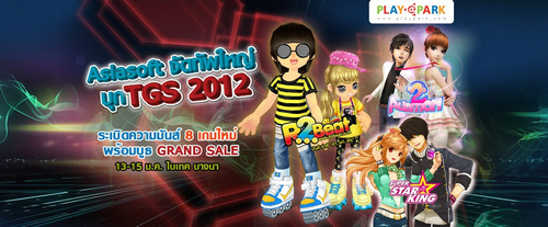 Asiasoft จัดทัพใหญ่บุกงาน Thailand Game Show 2012 ประกาศรายชื่อออกมาแล้วเกมเมอร์ถึงกับต้องร้องซี้ด !! เกมส์ใหญ่ฟอร์มยักษ์ตบเท้าโชว์ตัวกันเต็มๆ โดยปีนี้ Asiasoft จัดเกมส์ออนไลน์ใหม่ถึง 8 เกมส์ไปร่วมงาน พร้อมเปิดให้ได้สัมผัสทดลองเล่นกันได้ในงาน