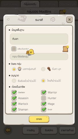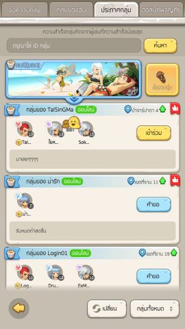 การเข้ากลุ่ม : หลังจากที่ LV.6 แล้วให้ไปที่กลุ่ม >ประกาศกลุ่ม แล้วเข้ากลุ่มที่ต้องการได้ แนะนำให้เลือกอาชีพที่ขาดตัวละครของเรา จะได้บัฟเพิ่มพลังทั้งปาร์ตี้