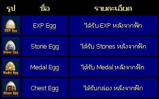 3. ระบบฟักไข่ มีไอเทมต่างๆ มากมายจากการฟักไข่สำเร็จ