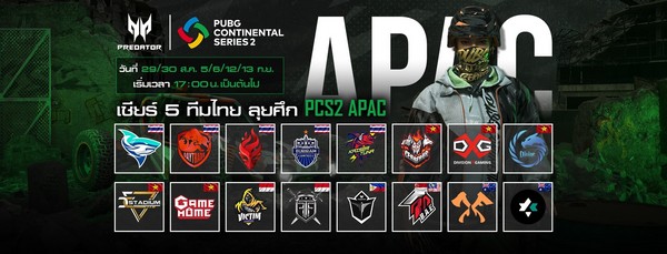การแข่งขัน PUBG Continental Series 2 APAC เป็นการแข่งขัน PUBG ในเวทีระดับโลก โดยมี 16 ทีม ตัวแทนจาก ไทย / เวียดนาม / อินโดนีเซีย / ฟิลิปปินส์ / มาเลเซีย / สิงคโปร / โซนโอเชียเนีย เข้าชิงเงินรางวัลรวมกว่า 6 ล้านบาท