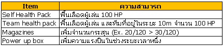 เพื่อนๆ สามารถหากล่องไอเทมได้ทั่วไปภายในฉาก สามารถใช้งานได้เฉพาะฝั่ง Human เท่านั้น ซึ่งจะมีรายละเอียดดังนี้