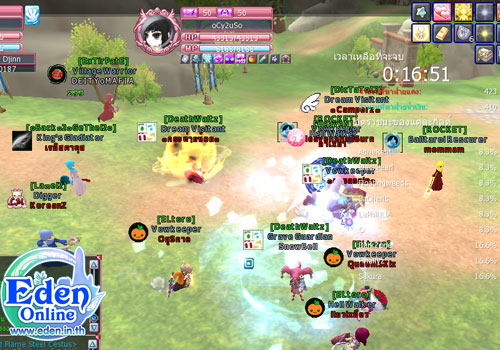 ซึ่งงานนี้ต้องบอกว่าด้วยจำนวนคนที่เข้าร่วมนั้น ทำให้เมื่อเปิดแผนที่มาแล้ว แสงวิบวับๆ ของสกิลสุดอลังการมาแยงตา ถ้าเครื่องของคุณไม่ไหว มีการกระตุกเมื่อลงสกิลเยอะๆ แล้วนั้น ทางทีมงานแนะนำให้ลองปิด หรือลดเอฟเฟกดูนะค่ะ ช่วยได้เยอะเจ้าค่ะ ว่าแล้วเราก็ไปชมบรรยากาศสงครามแย่งชิงดินแดนกันเลยจ้า
