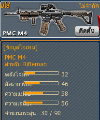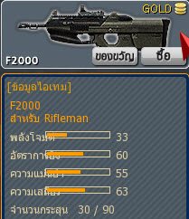 ปืนนี้เป็นปืนไรเฟิลจู่โจมที่เหมาะสำหรับระยะกลาง ข้อดีของมันคือแรงถีบกลับของปืนไม่ค่อยมากและมีความเร็วในการยิงต่อครั้งสูง (ยิงไว) ซึ่งเมื่อเทียบกับปืนอื่นๆ ในตอนแรกนับว่าน่าใช้อย่างยิ่งทั้งความนิ่งกับความเร็วในการลั่นกระสุน เล็งหัวแล้วยิงๆ ก็ได้ Head Shot แน่นอนหรือจะยิงตัวก็แรงไม่ใช่น้อย โดยปืนนี้จะมีกล้องซูมให้ด้วย(คลิกขวา)