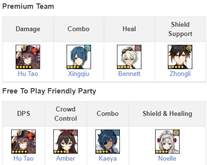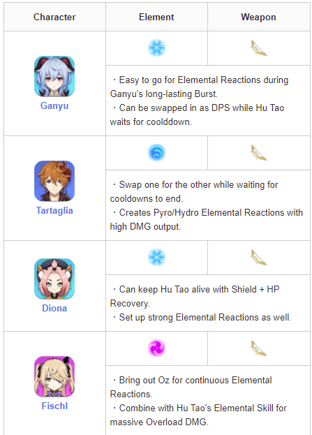 แนะนำตัวละครที่เหมาะร่วมกับ Hu Tao