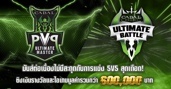 เตรียมพบกับความมันส์อย่างต่อเนื่องกับการแข่งขันครั้งใหม่ยิ่งใหญ่กว่าเดิม ของเกม CABAL ในรูปแบบ PVP 5V5 ทั้ง 2 รายการคือ CABAL M Ultimate Battle และ CABAL PVP Ultimate Master ที่พร้อมให้ผู้เล่นได้ระเบิดความมันส์กันต่ออย่างจุใจ พร้อมลุ้นชิงเงินรางวัลและไอเทมพิเศษมูลค่ารวมกว่า 600,000 สำหรับสาย CABAL PC สามารถเข้าร่วมสมัครได้ตั้งแต่ 26 เมษายน – 2 พฤษภาคม และ สาย Mobile สมัครได้ตั้งแต่ 3 – 9 พฤษภาคม นี้เตรียมตัวให้พร้อม ซ้อมมือมาให้ดีแล้วมาลุยกันเลย!
