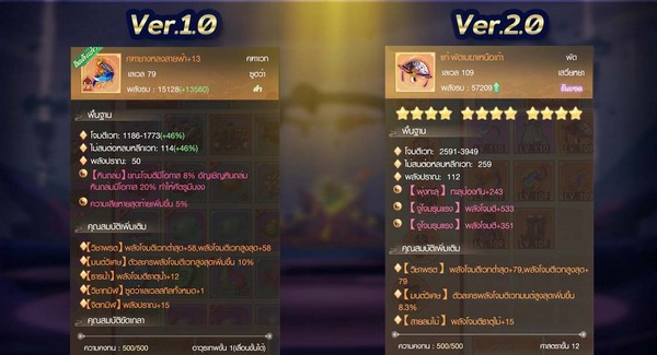 – อุปกรณ์สีส้มและสีทองจะมีดาวปรากฏหลังจากแพทช์อัปเดต โดยยิ่งมีระดับดาวสูง คุณสมบัติก็จะยิ่งแข็งแกร่ง (สูงสุด 12 ดาว) สามารถใช้ไอเทมแหล่งกำเนิดอาวุธเทพในการอัพระดับดาวได้ (ได้จากการย่อยอุปกรณ์สีทอง/สีส้มหรือซื้อจากร้านค้า)