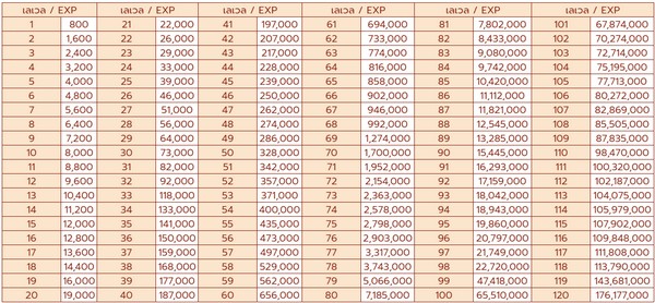– เพิ่ม EXP ที่ได้รับจากการเก็บเลเวลให้มากขึ้น
