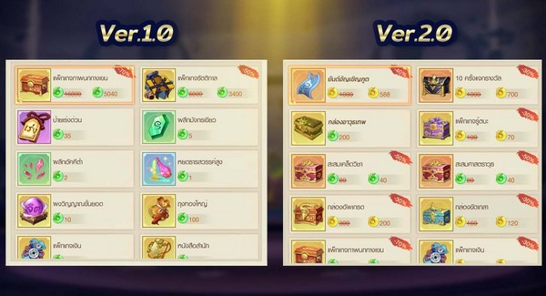 – ปรับ : ค่าซ้อนทับไอเทมในกระเป๋าจากเดิม 999 เป็น 9,999 ชิ้น ในบางรายการ