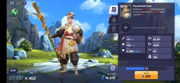 นักพรตเต๋า ฮวาดัม เกรด หายาก (เขียว) ธาตุ แสง รูปแบบ HP ที่มีสกิลดีๆ อย่าง Thunderbolt Soul ที่จะสร้างความเสียหายพร้อมเสกดีบัพ ลด ATK II ใส่ตัวละครแถวหลังทั้งหมด แต่หากตัวละครเหล่านั้นติดเอฟเฟกต์ ลดความเร็ว อยู่จะทำให้ศัตรูติด มึนงง แถมไปด้วย หินสกิลทั้ง 3 จะให้ความสามารถเพิ่มเติมดังนี้ หินขาว เพิ่มระยะเวลาของ ลด ATK II เพิ่มอีก 3 วินาที หินเขียว เพิ่มความเสียหายของสกิล Thunderbolt Soul ขึ้นอีก 20% หินม่วง หากเพื่อนตาย จะยกเลิกความตายนั้น และ ฮวาดัม จะแบ่ง HP ให้ 30%