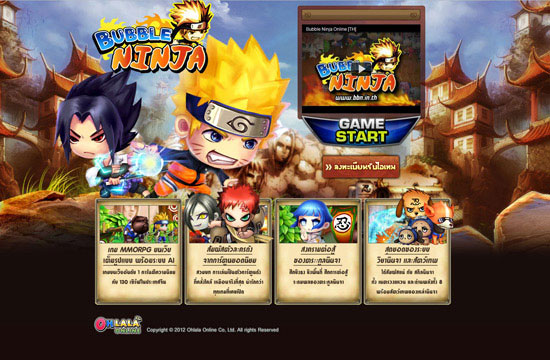 ถึงเวลาพร้อมลุยกันแล้วกับเหล่าสาวกนินจาชาวไทย มาร่วมเป็นส่วนหนึ่งของสงคราม Bubble Ninja และร่วมทดสอบระบบกันก่อนเล่นจริงว่าเกม 2D ที่เล่นบนเว็บบราวเซอร์ได้นั้นมันลึกซึ้งสักแค่ไหน และตามติดเนื้อเรื่องของเหล่านินจาจากการ์ตูนชื่อดังที่หลายๆ คนชื่นชอบ