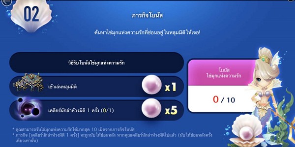 * คุณสามารถรับไข่มุกแห่งความรักได้มากสุด 10 เม็ดจากภารกิจโบนัส